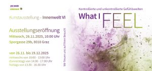 Bereits zum sechsten Mal seit 2023 veranstalten wir ab 26.11. im Rahmen des “Innenwelt”-Kunstprojektes die gleichnamige Kunstausstellung in der Grazer Innenstadt. Die Künstler*innen – unsere Teilnehmer*innen, Kund*innen und Bewohner*innen – haben sich dieses Mal kreativ mit individuellen Gefühlswelten gemäß dem Thema “What I Feel” auseinandergesetzt und geben mit ihren Werken Einblick in die eigenen Emotionen.